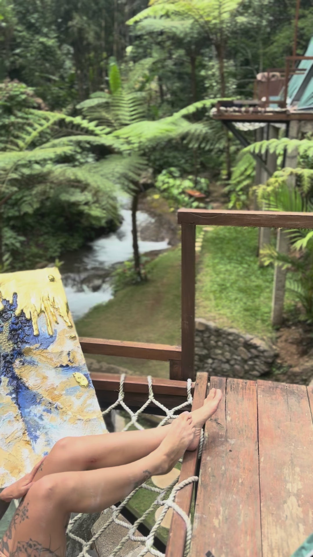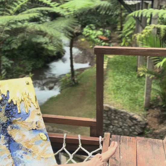 Media: Stretched Canvas, Acrylic, Acrylic Spray, Cracking Paste, Golden Leaves, Epoxy Resin